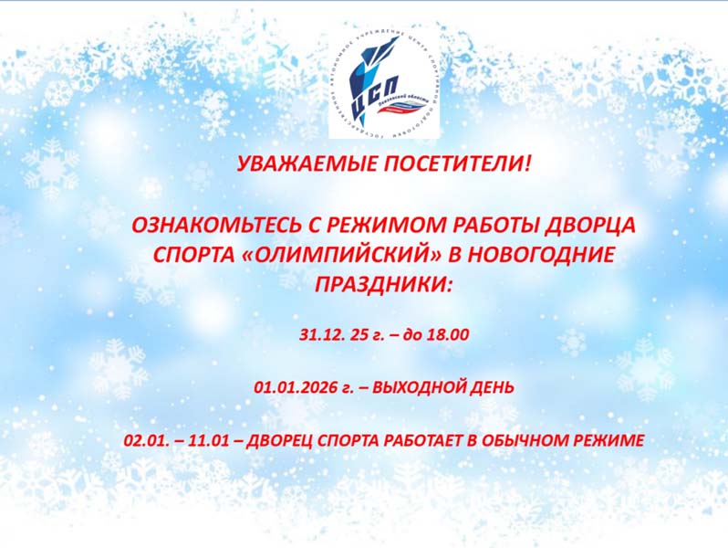 Публикуем график работы ДС «Олимпийский» в праздничные дни и приглашаем провести досуг с пользой для здоровья!