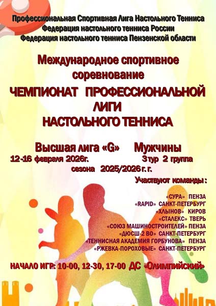 С 13 по 15 февраля 2026 г. в ДС «Олимпийский» пройдёт 3-й тур международных соревнований «Профессиональная лига настольного тенниса». Пензенскую … Читать далее
